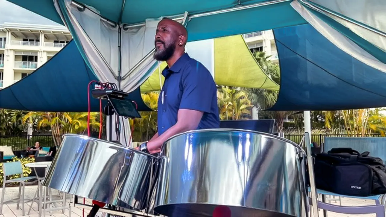 Disfrute de la música en vivo de Hugh Huggins mientras se sienta, bebe y saborea en Salty Rim Bar & Grill en Margaritaville Resort Orlando, junto al Promenade en Sunset Walk.